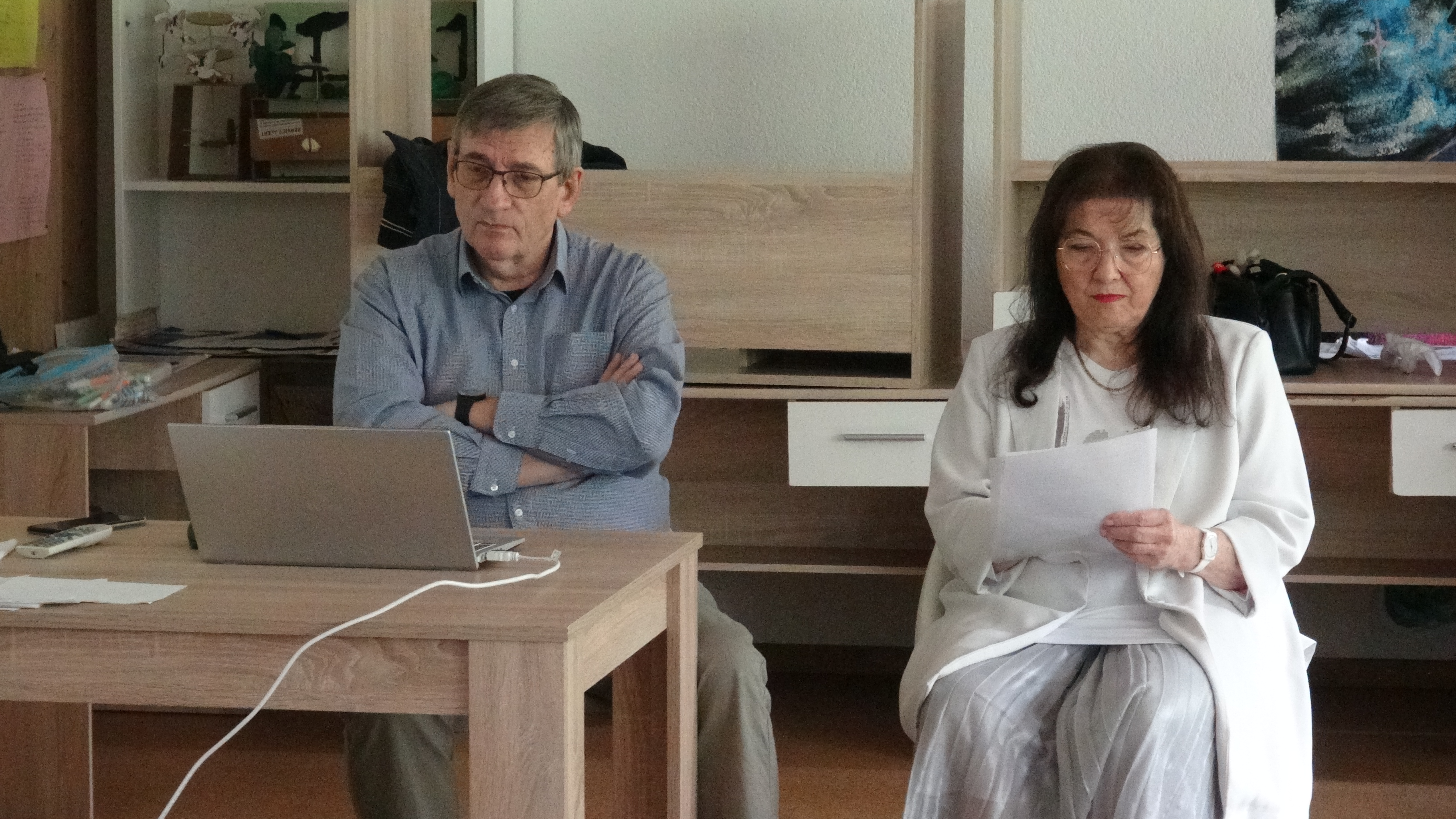 Präsentation der Theatergeschichte der 60er durch Leo Anthenien und Anna-Lisa Tessaro.