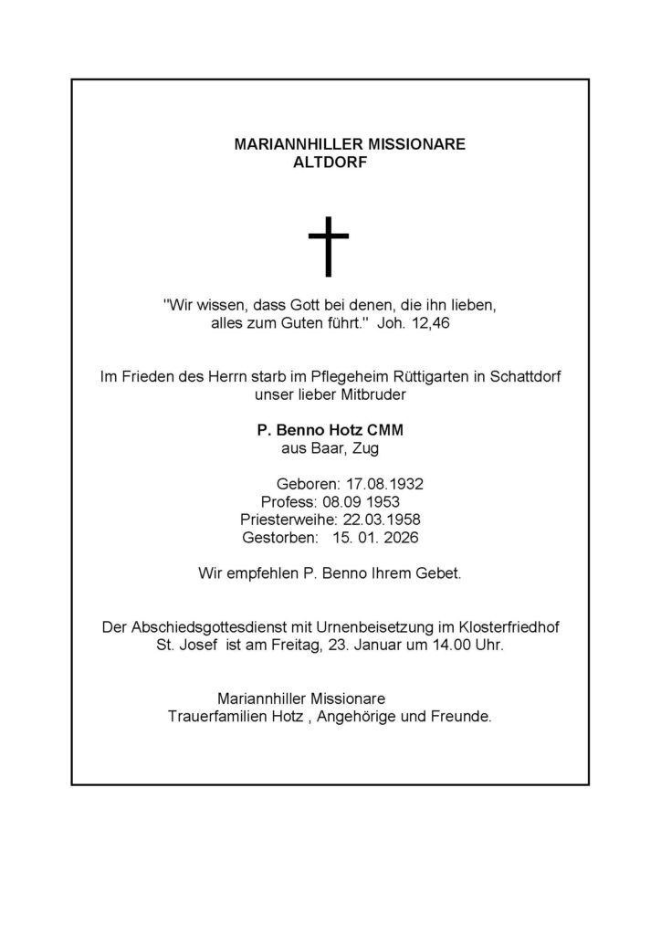 P. Benno Hotz – Todesanzeige